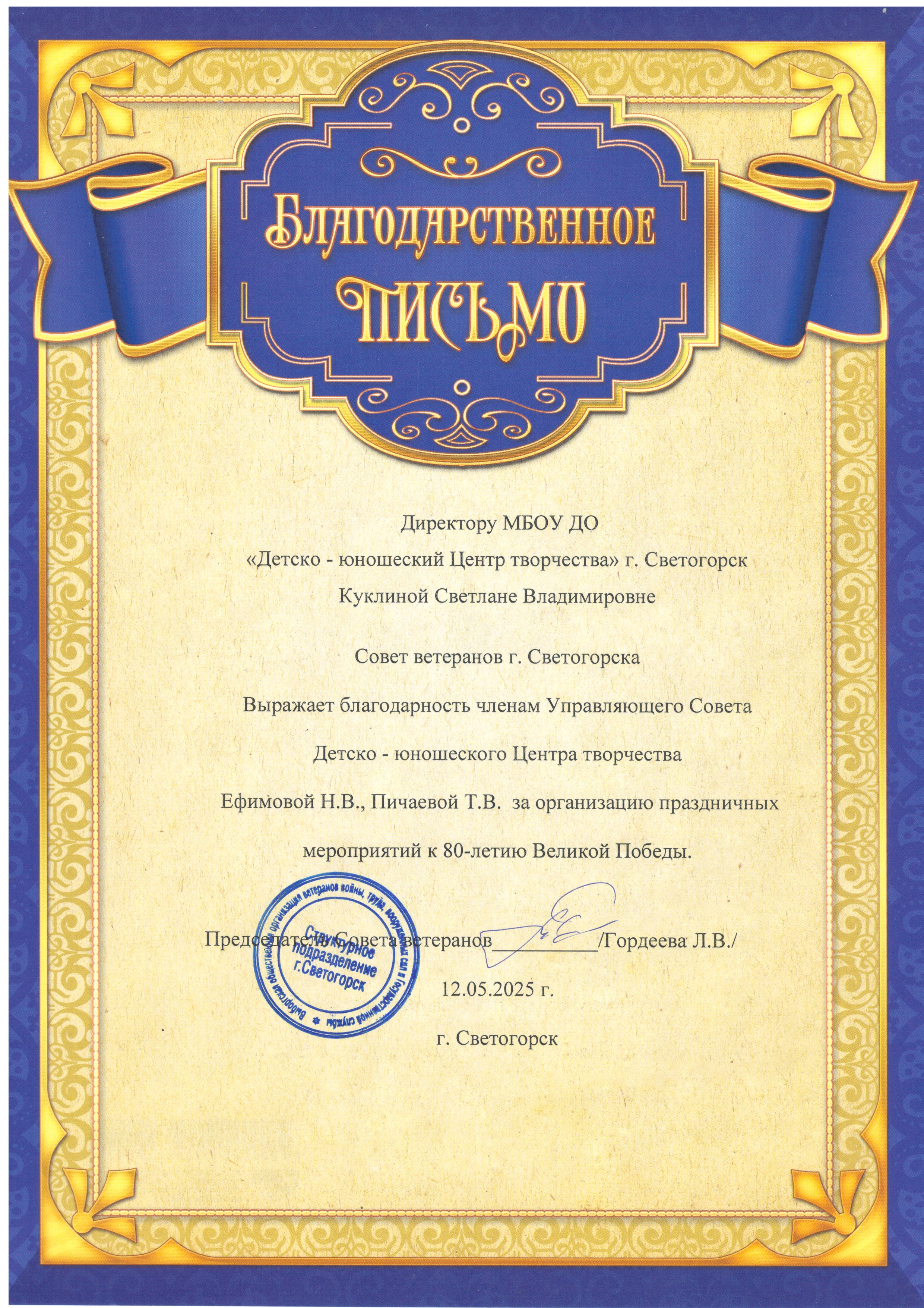 УПРАВЛЯЮЩИЙ СОВЕТ МБОУ ДО "ДюЦт" г. СВЕТОГОРСК